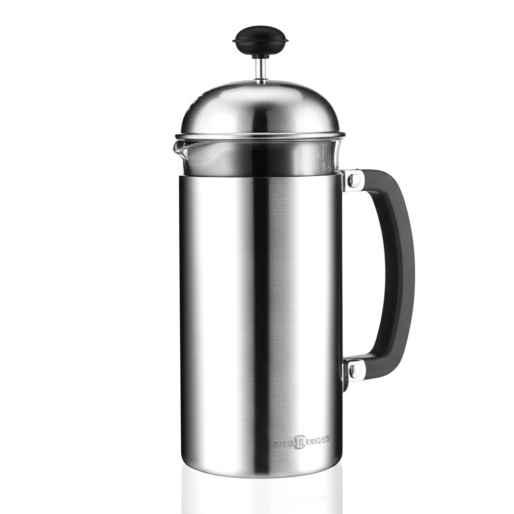 Double-wall titanium French press for camping. Keeps coffee hot and won’t…