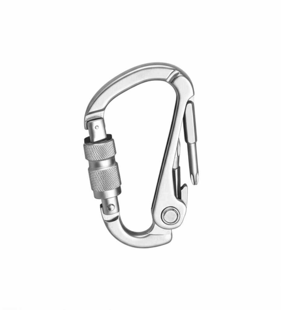 Stainless steel carabiner with 8 integrated tools. Bottle opener, screwdrivers, and he…