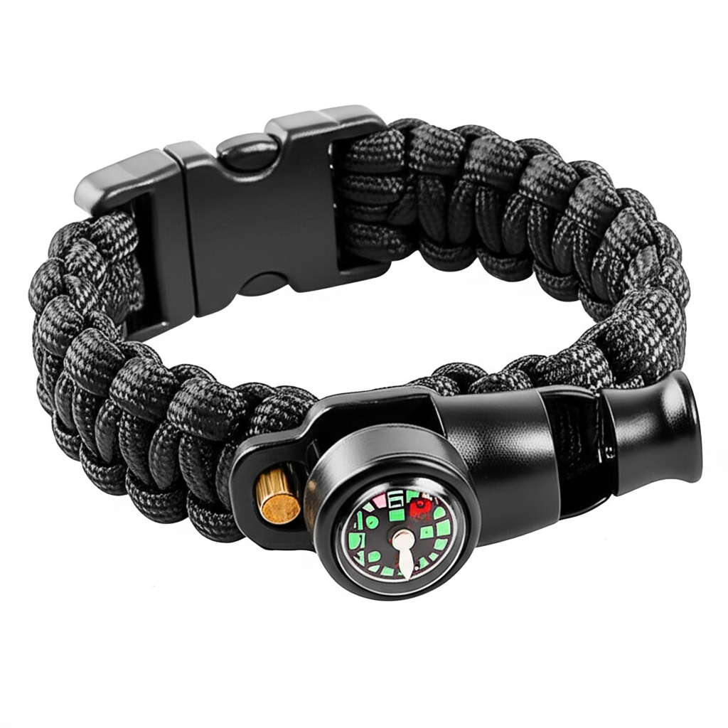 Military-spec paracord bracelet with compass, fire starter, and emergency…